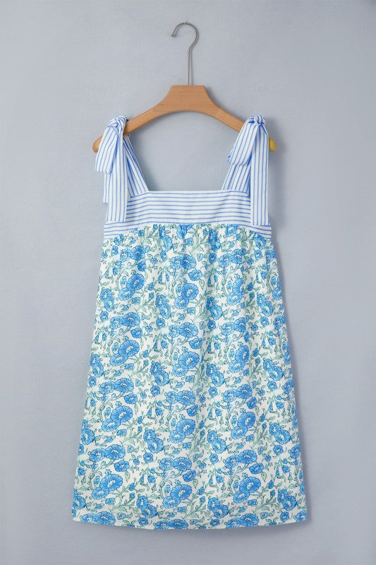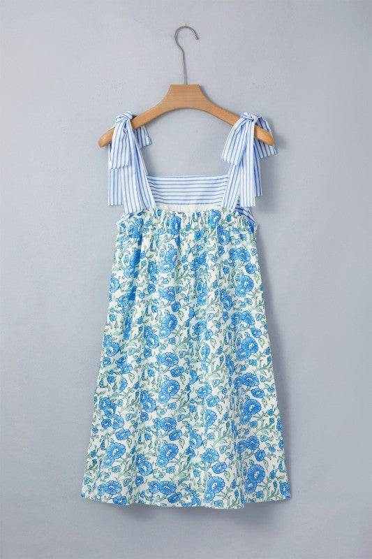 Floral Stripe Patchwork Bow Tie Strap Dress