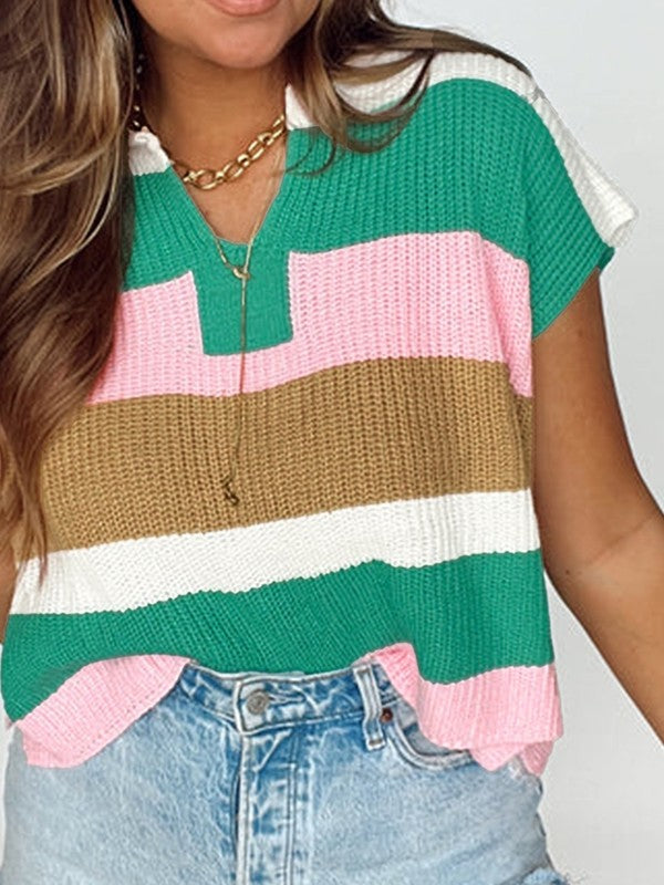 Embrace comfort with the soft knit fabric and short sleeves that keep you cool and stylish during warmer days.