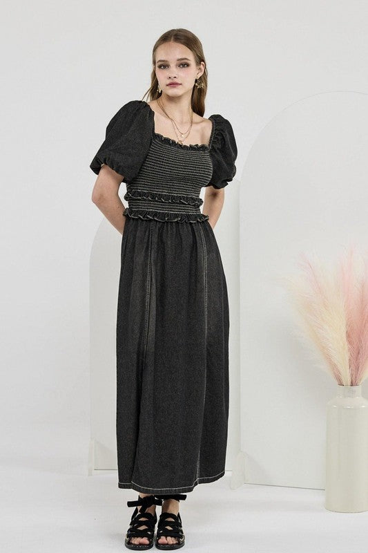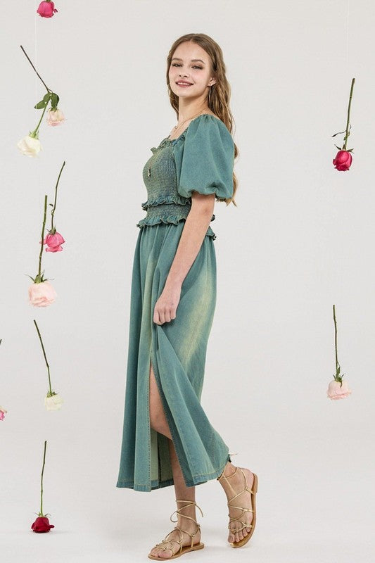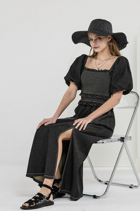 Elegant Details: Ruffled waist, A-line flow, and side slit add feminine movement for an Instagram-ready look.
