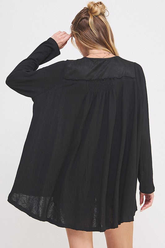 LONG SLEEVE V-NECK OVERSIZED BUTTON DOWN TUNIC