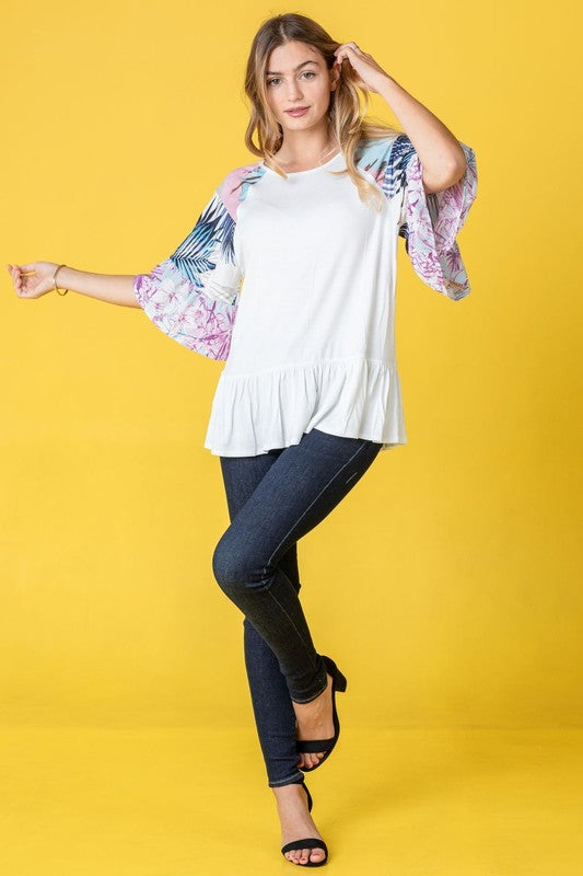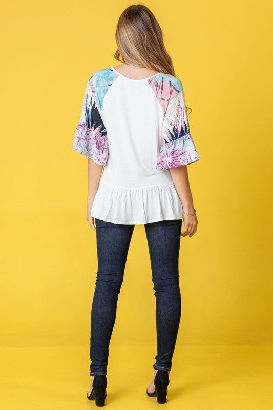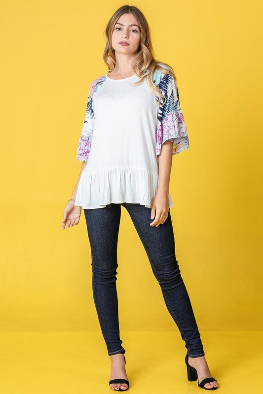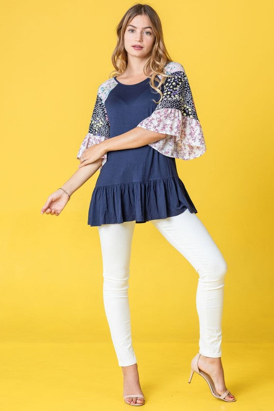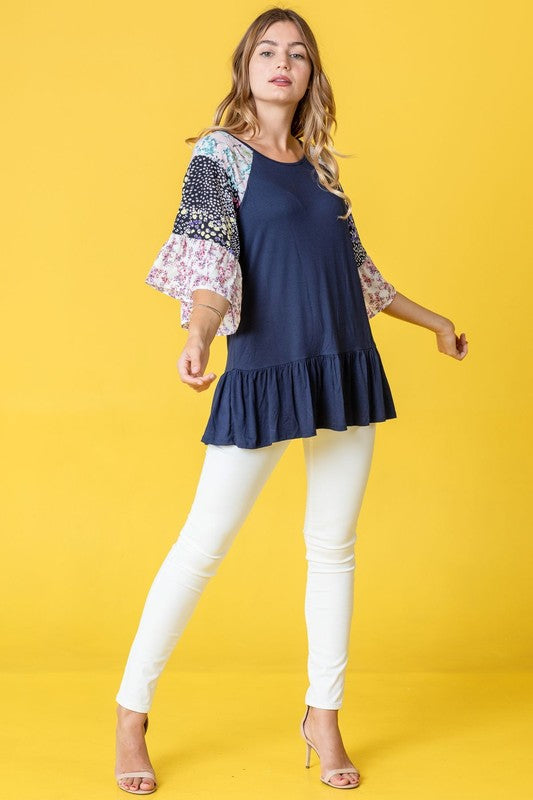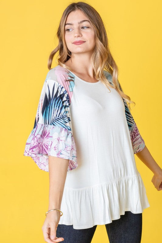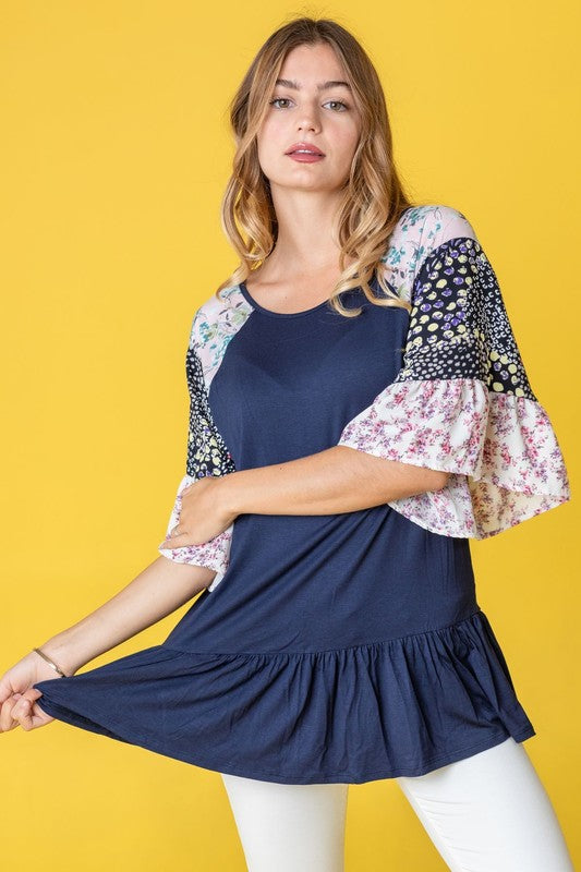 Mix Pattern Circular Flounce Sleeve Tunic