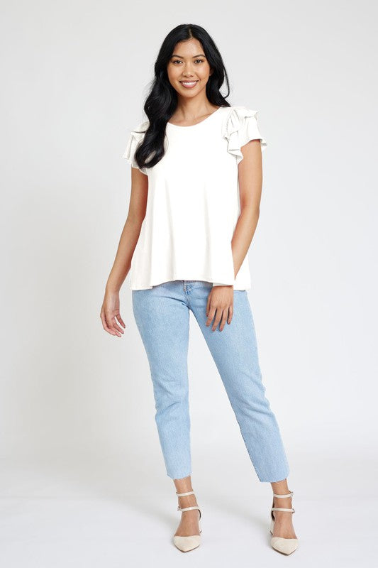 Spring Double Ruffle Sleeve Top