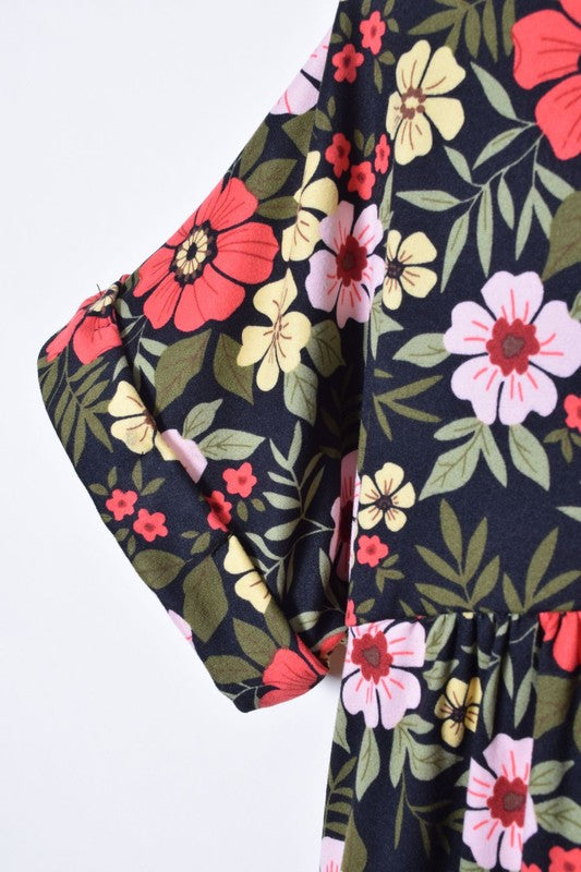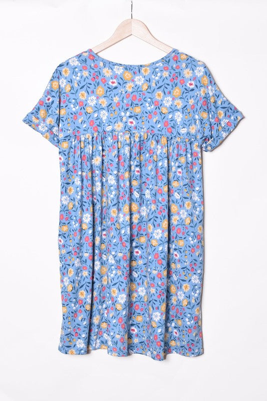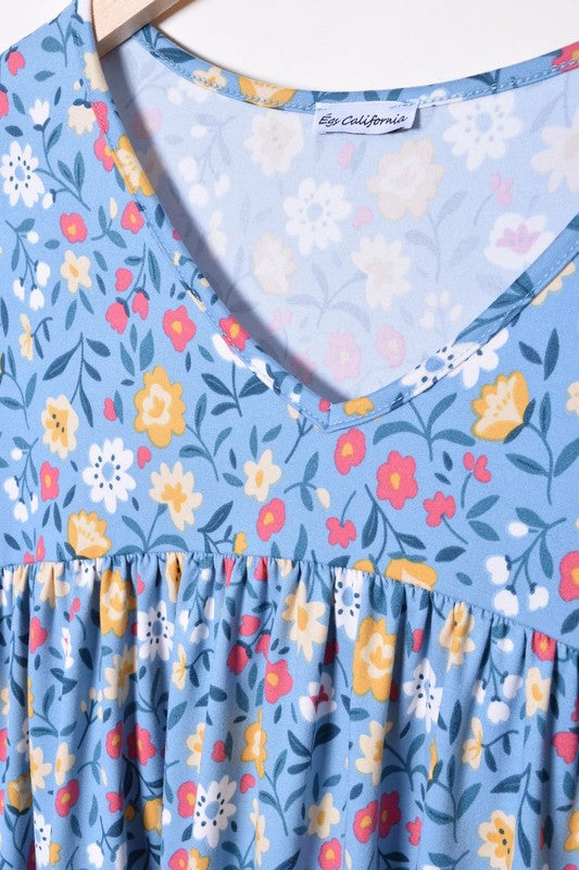 V-Neck Floral Baby Doll Dress