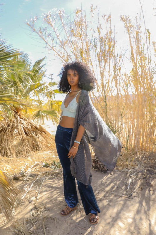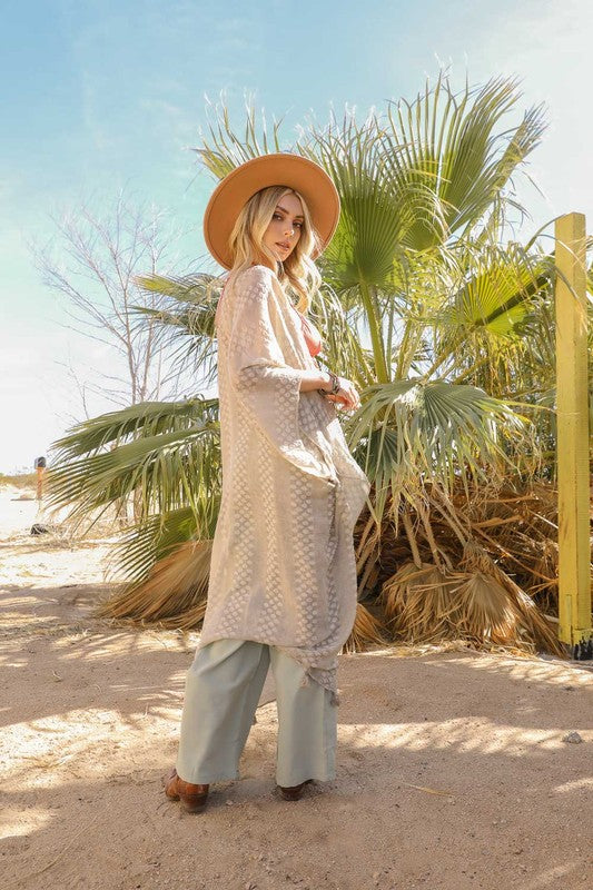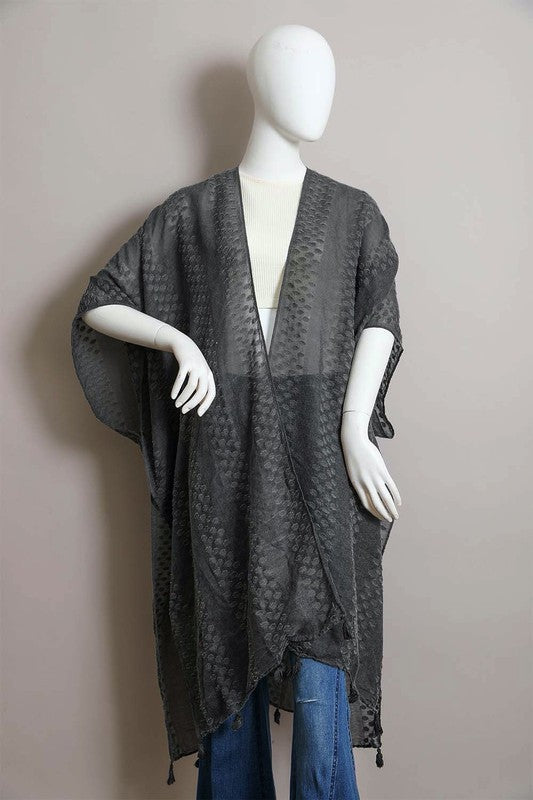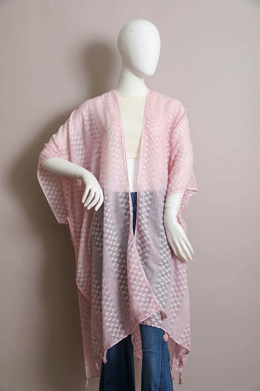 Pom Trimmed Jacquard Kimono
