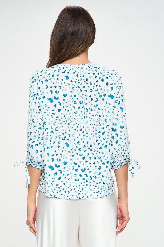Made in USA Print Top with Self Tie Sleeves. Fabric content: 100% Polyester.